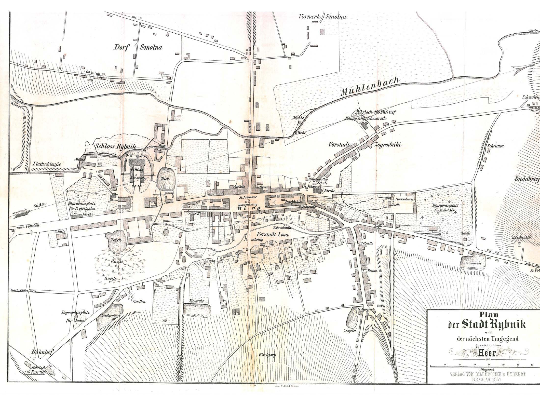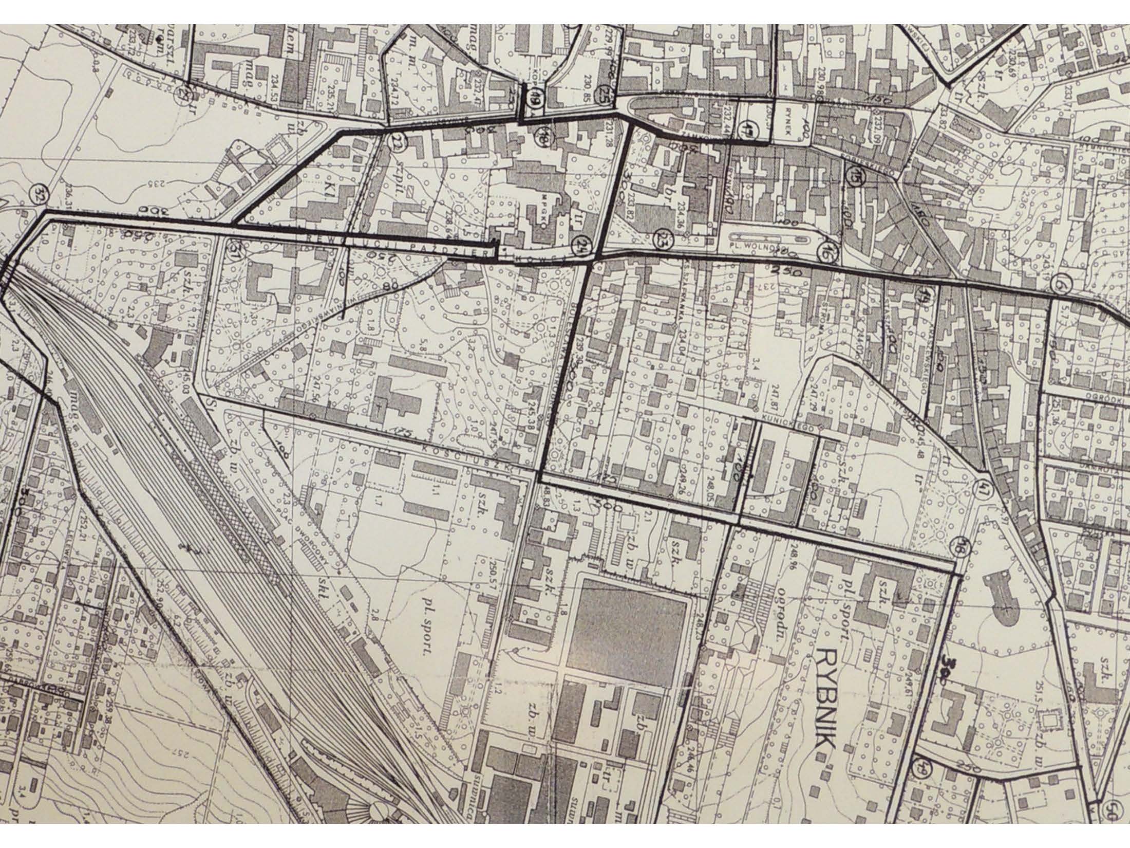 In the Middle Ages, Rybnik was a fishing settlement located at the intersection of important trade routes from Wrocław and Racibórz through Oświęcim towards Kraków and from the Czech Republic through the Moravian Gate into the interior of the country. After years, the east-west direction, at which the Market Square was established, changed into Raciborska, Sobieskiego, Powstańców Śląskich and Mikołowska streets, and the north-south route running slightly east from the Market Square into Gliwicka, Łony and 3 Maja Streets. On the historical maps of Rybnik, it is not difficult to notice that the strongest was the eastern direction. The section between the market and the fork of ul. Powstańców and Mikołowska were tightly encapsulated in the early stages of the city’s development. This is where most of the shops and services were located that did not fit the market.