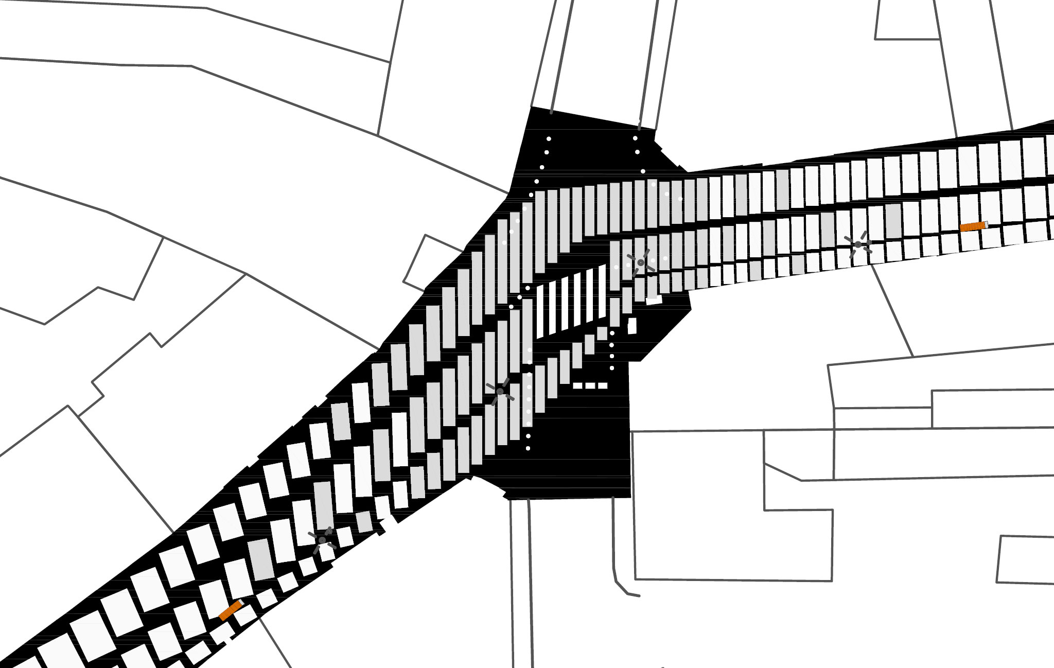 The problem can be reduced to the problem of entering the largest rectangle in a quadrangle. In addition, it was important to ensure minimum and maximum gaps between fields. Different types of algorithm that fulfilled these conditions were tested. The algorithm was modified, which implied a change in the pattern of the whole surface. This problem is unusual for the architect’s workshop, but it translates directly into the materiality of the project. Although all aspects of the formula could be parameterized, only the general assumptions of the formula were described in this way. Drawings that were easier to do in the classic way were not generated.