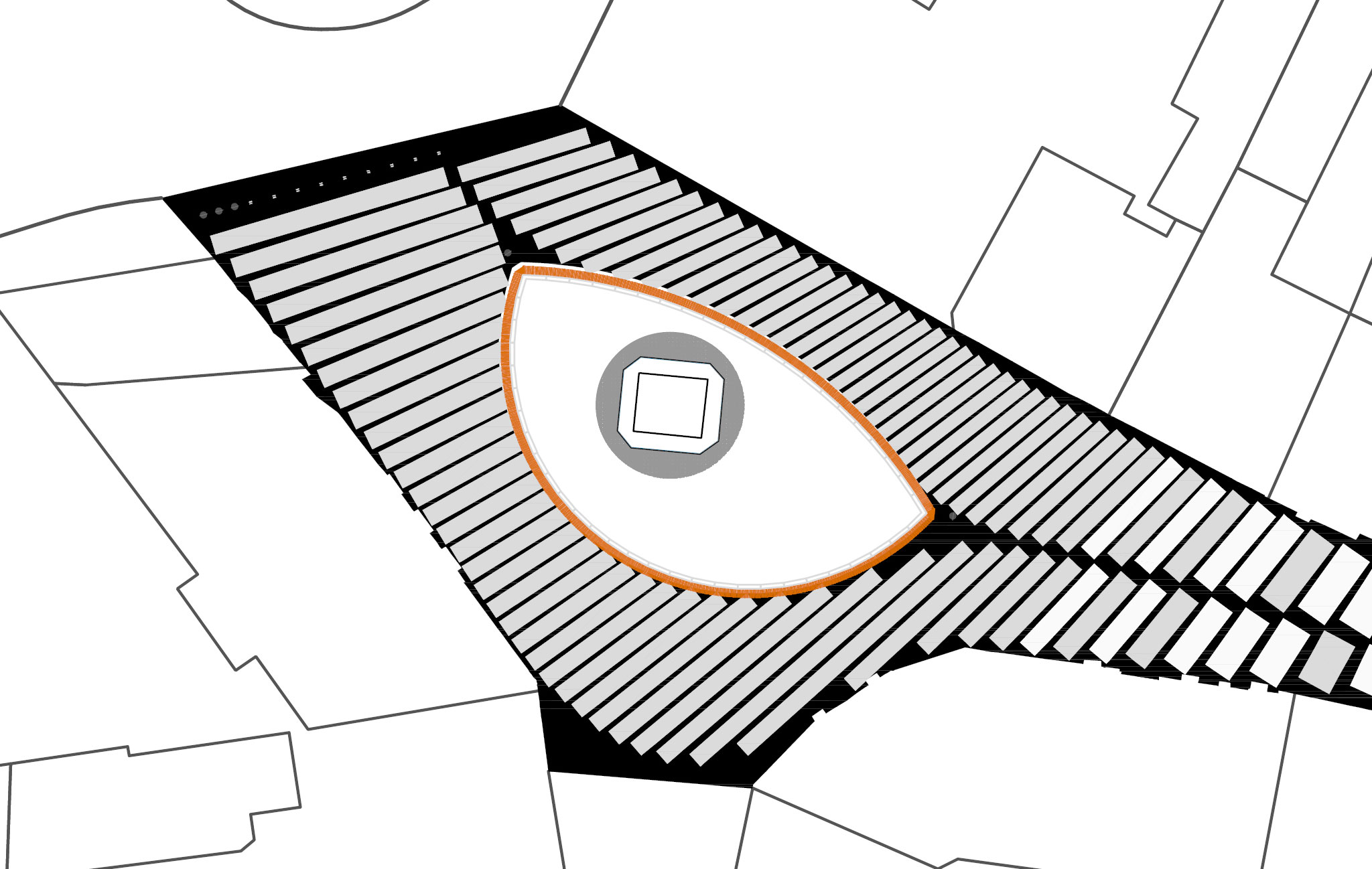 A tool was developed for the needs of the project, which, with any resolution, could describe the directions and degrees of dip in the two-surface area. In addition, the tool showed the difference between the old and the planned square surface. Every change in geometry generated automatically all drawings describing the features of the designed surface. Thanks to this, it was possible to meet these two seemingly mutually exclusive conditions.