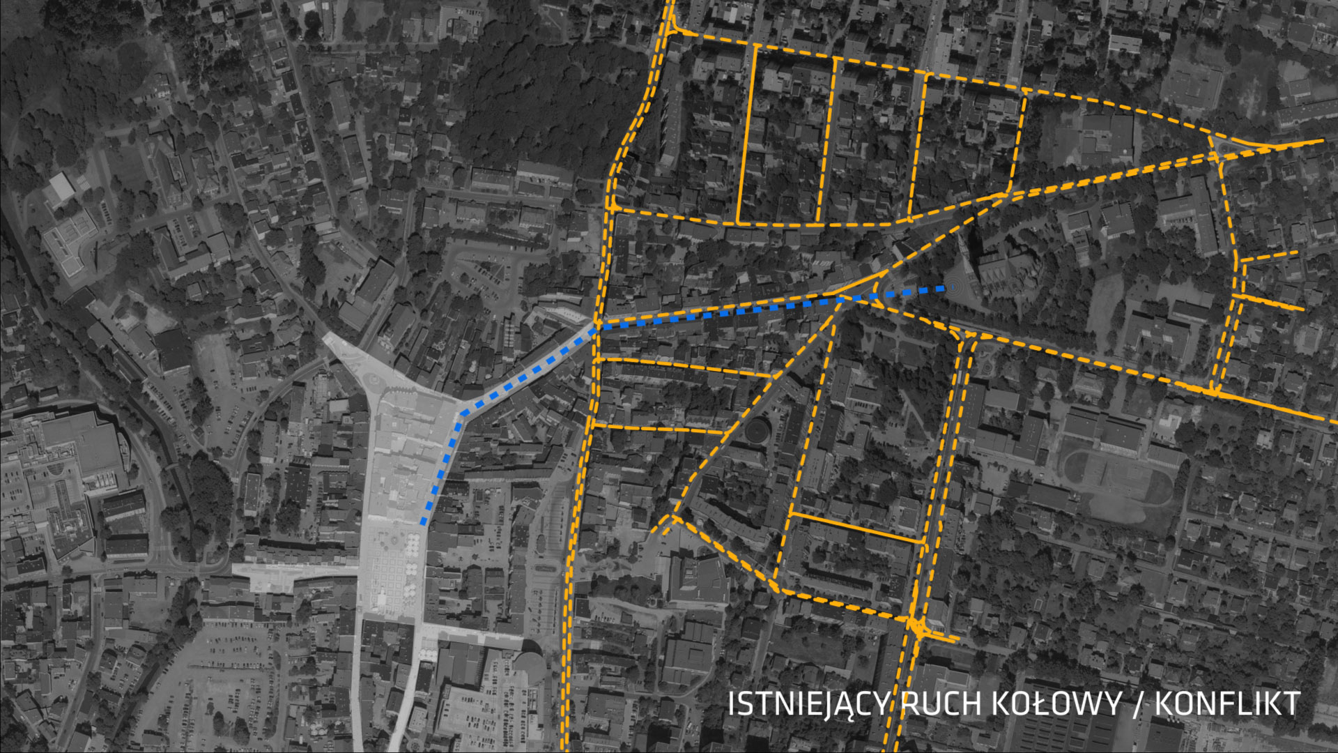 After an initial analysis, it was decided to include St. Jana with access to the Campus and the square at Plac Jana Pawła II.