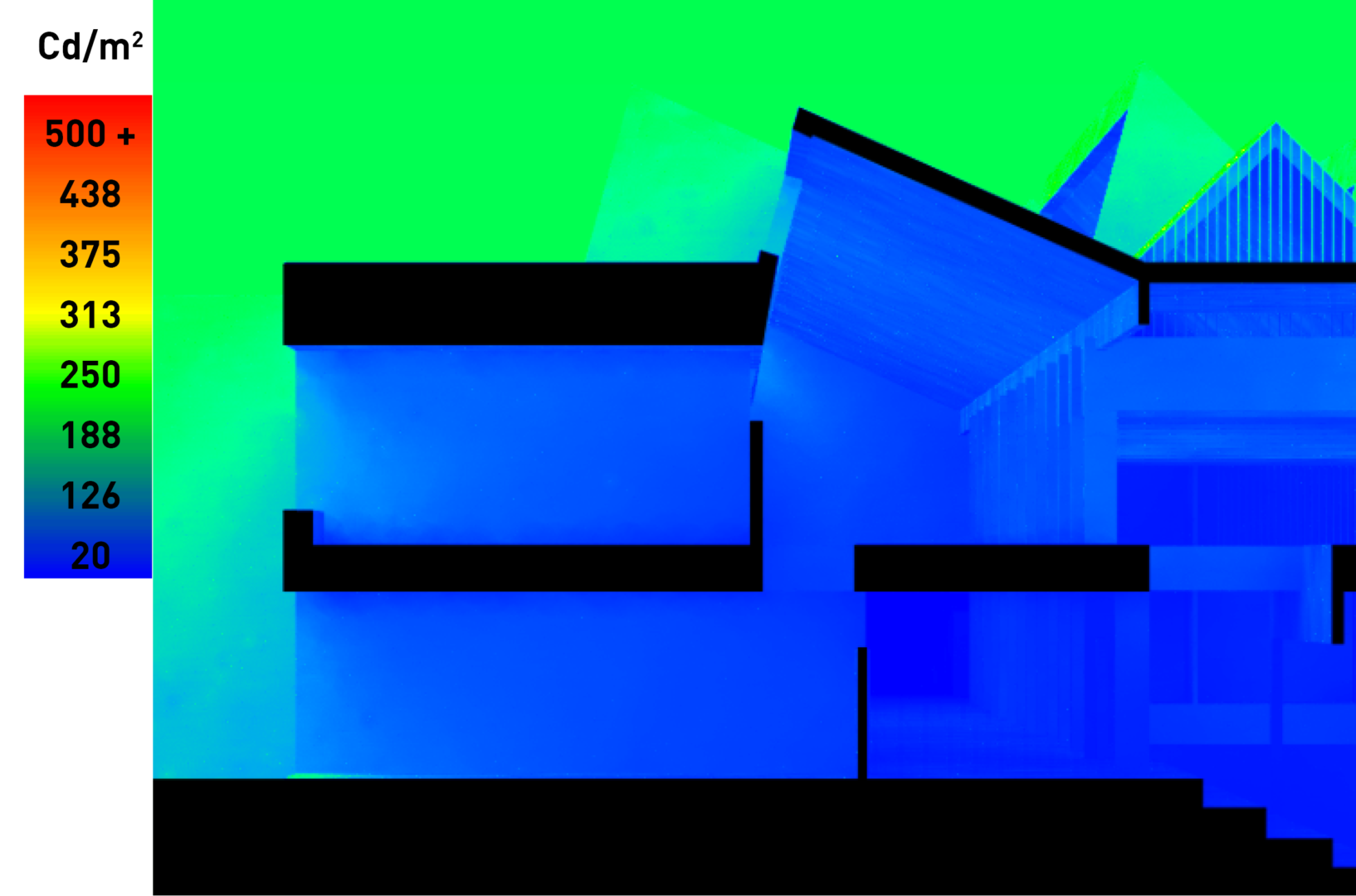 The presented luminance levels achieved, has been calculated for two specific dates in the year, on 21st of June (summer solstice) and on 21st of December (winter solstice).The solstices mark the beginning of the astronomical summer or the astronomical winter. The time during the day was set for 9 am (morning) and 12 pm (midday) accordingly.