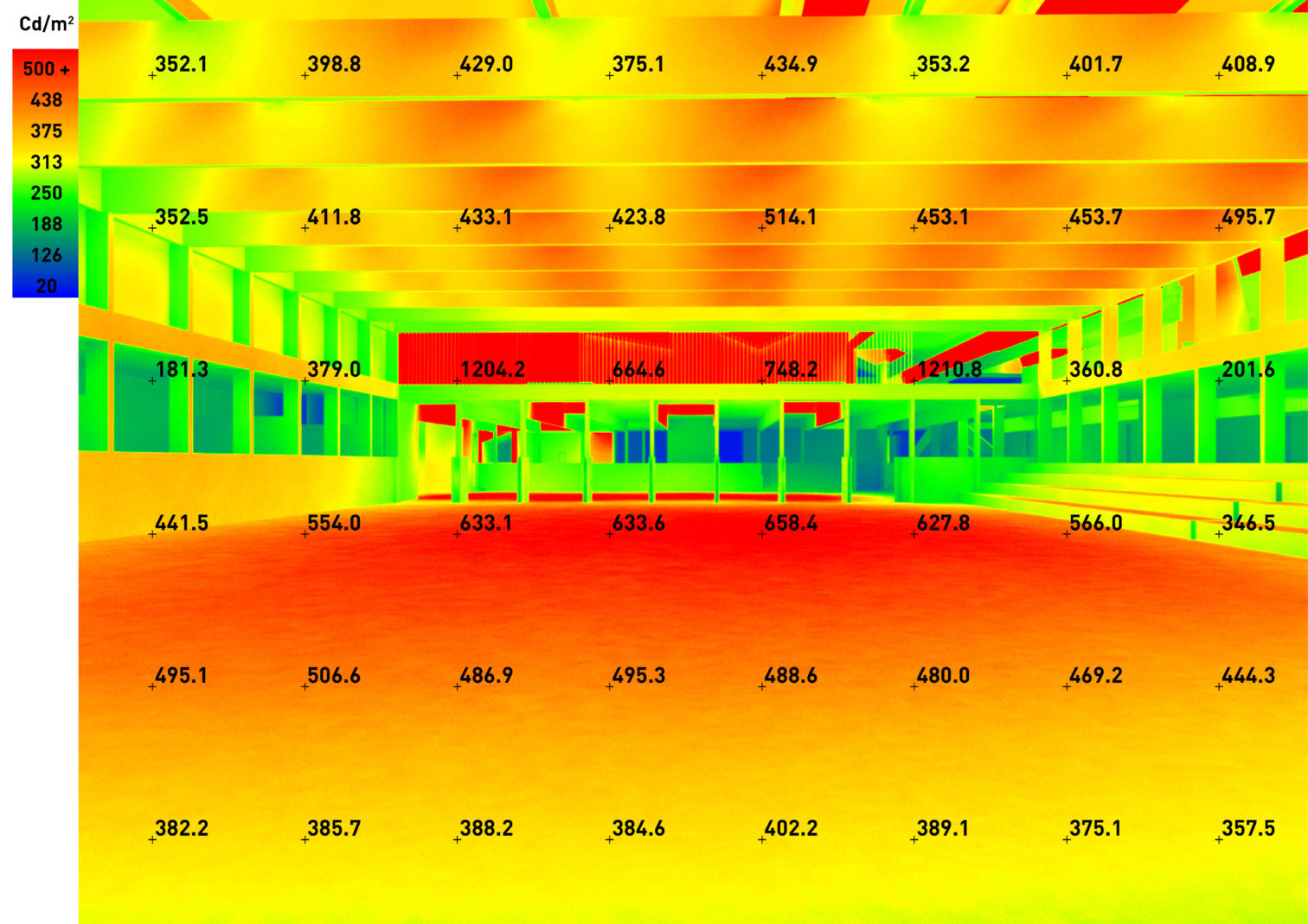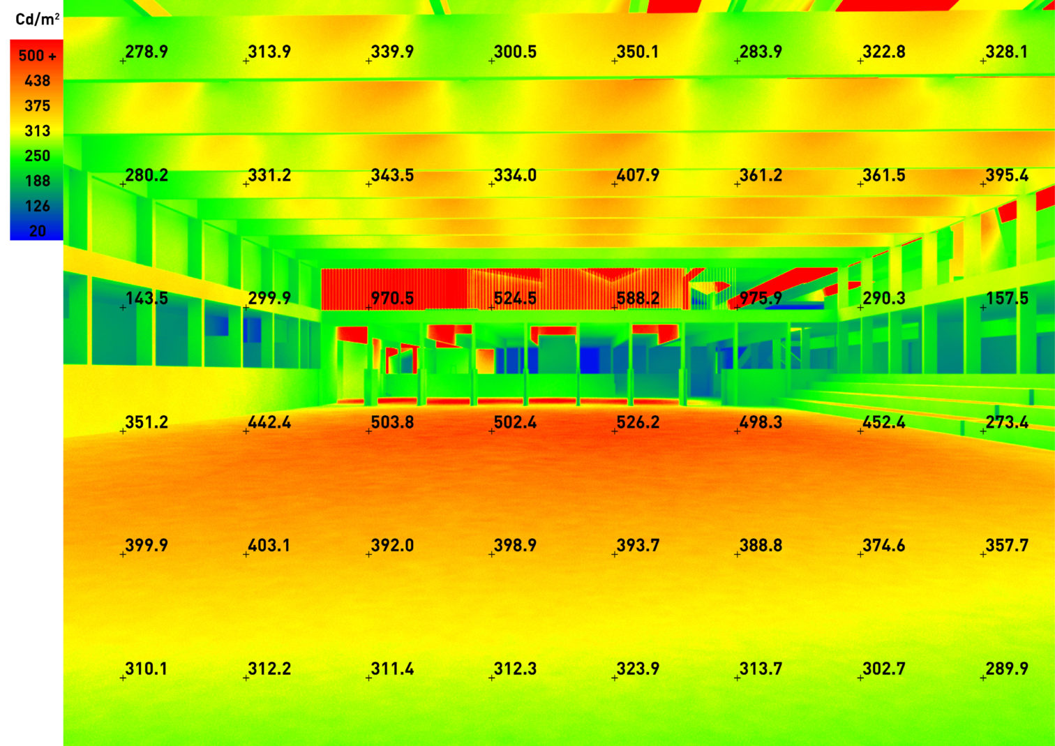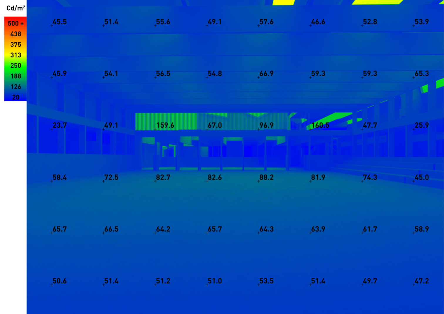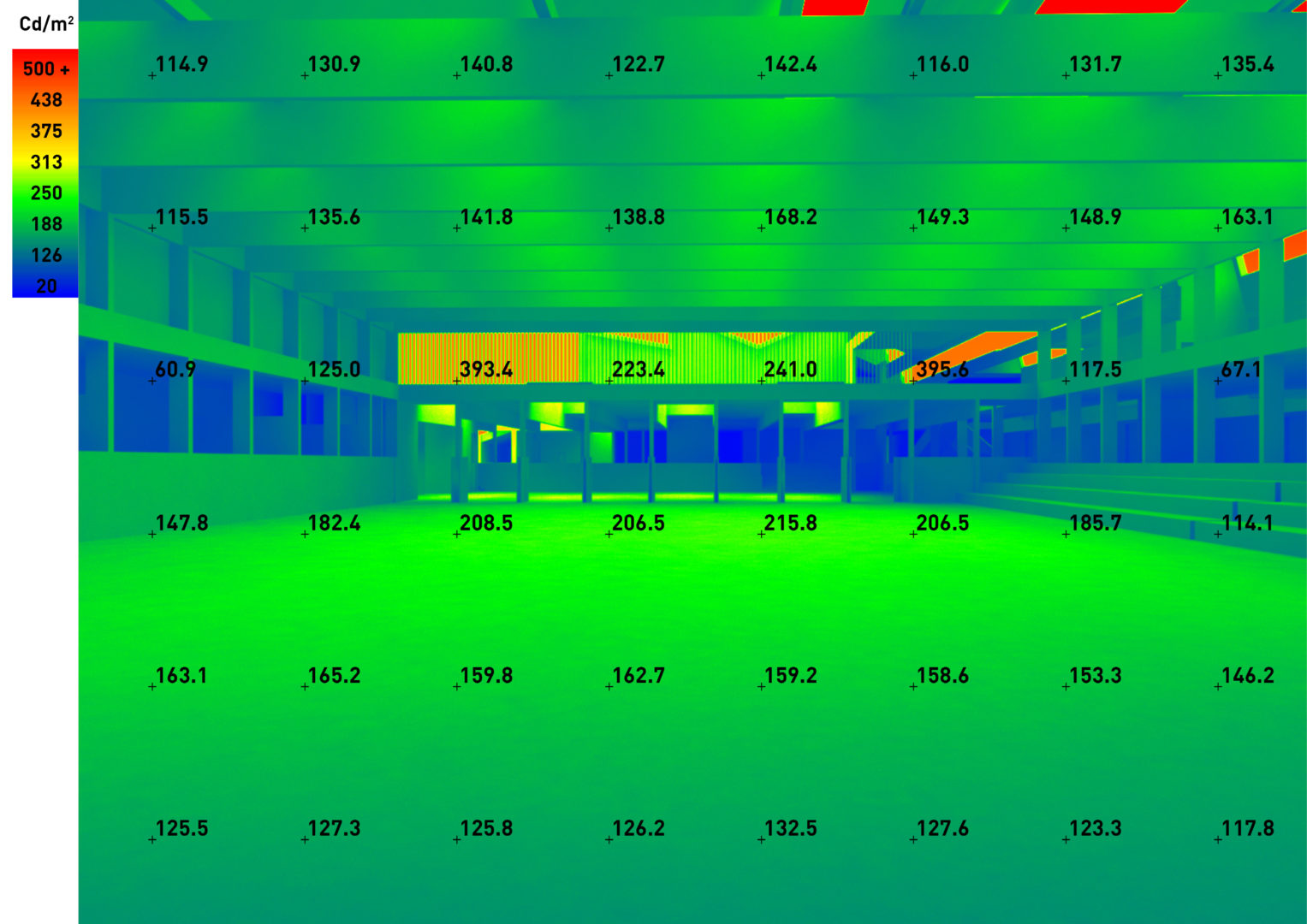 Uniform horizontal illuminance throughout the hall is important for ensuring a clear view of the entire playing area.