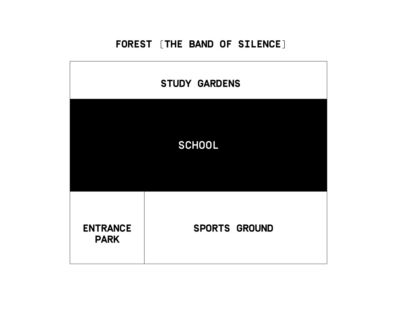 The building is located in the northern part of the site, due to which all class windows have a view of the forest wall. The space between classes and the forest is called the band of silence. A green wall obscures the view of the road and parking lots next to it. The study gardens (herbal, flower and ornamental grass) are located between the wall and the classroom windows, nurtured by students as part of the didactic process. Individual parts of the garden are divided into recreational zones. You can conduct outdoor activities on wooden terraces adjacent to the “basic level”. The view of the garden and walls of the forest is intended to encourage students to concentrate and remain active during lessons.
