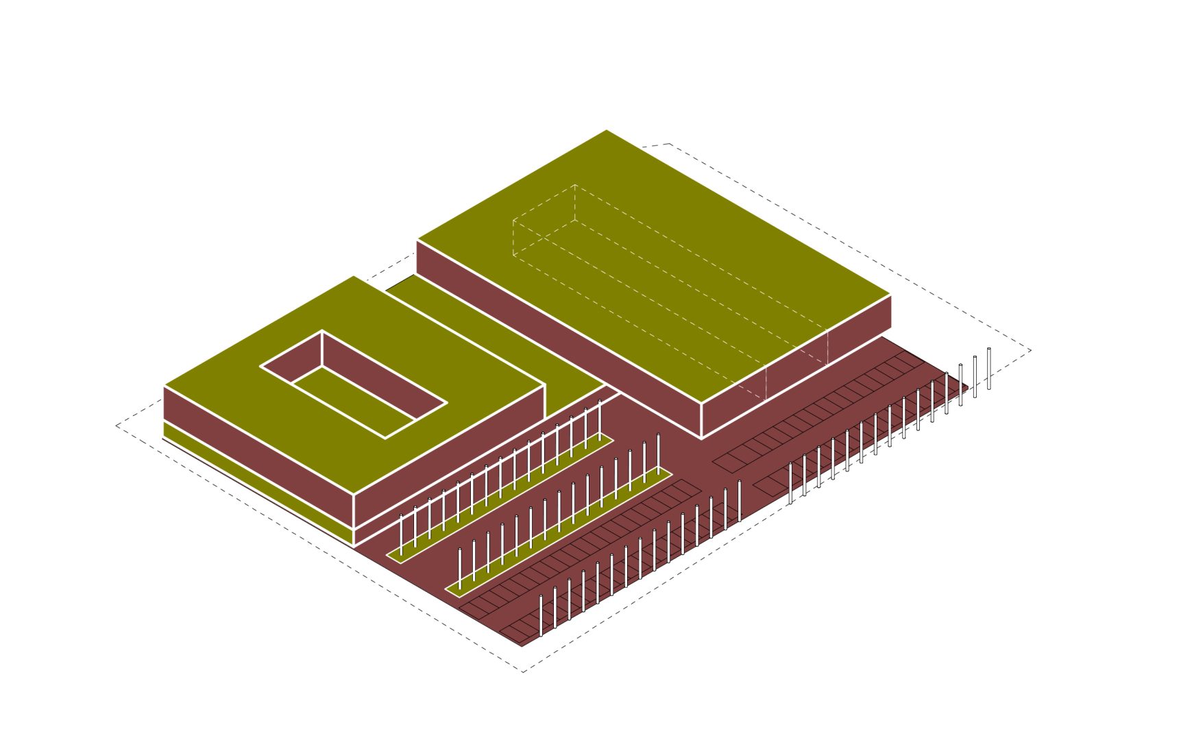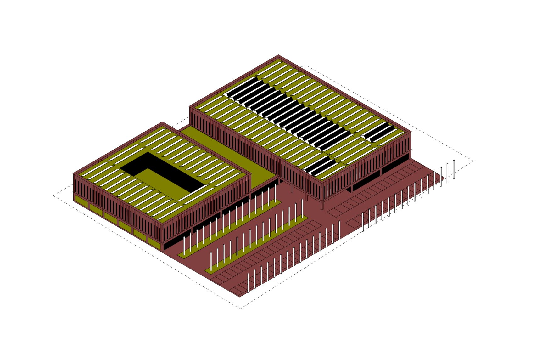 Priorytetem przy podejmowaniu decyzji projektowych było optymalizowanie łącznych kosztów inwestycyjnych i eksploatacyjnych zespołu oraz troska o szeroko rozumiane zielone otoczenie budynków.