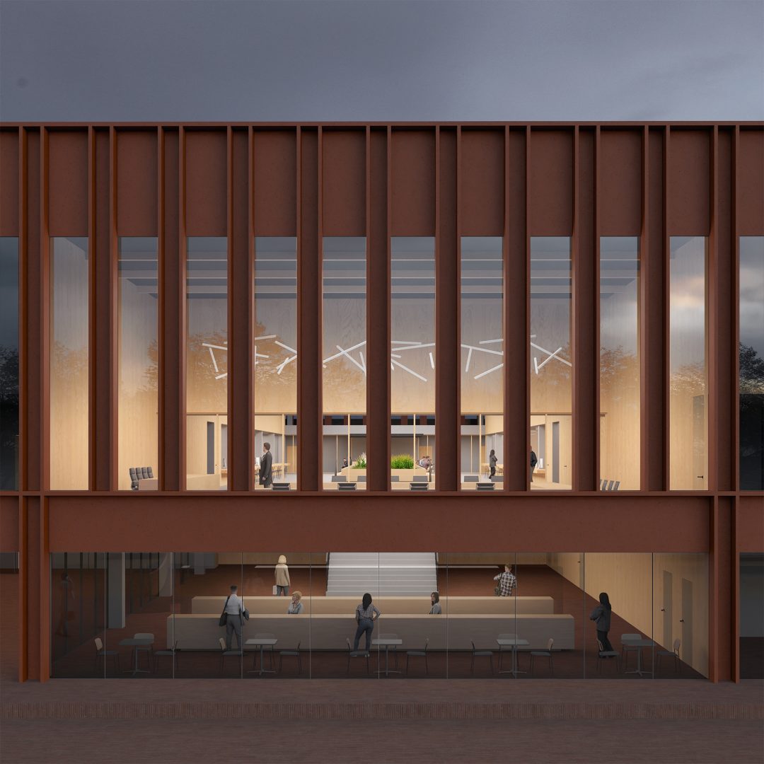 Tektonika elewacji umożliwia łatwe dzielenie wnętrz na pomieszczenia o różnej wielkości. Stałe, pionowe przeszklenia są rozdzielane wąskimi, nieprzeziernymi panelami, które zapewniają indywidualną wentylację pomieszczeń. Panele prostopadłe do ścian skutecznie ograniczają przegrzewanie wnętrz od wschodu i zachodu, a na elewacji południowej zaprojektowano rolety zewnętrzne.
