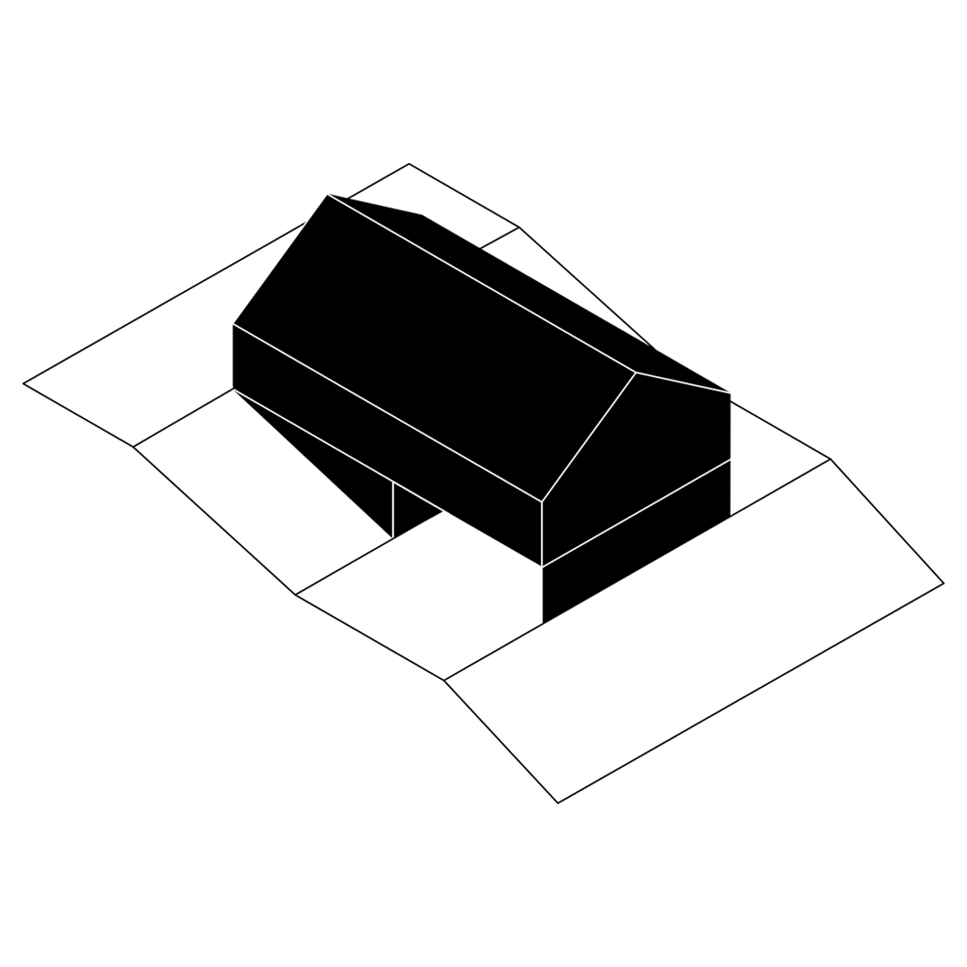 Na koniec dom kształtuje się z czterech kwadratów 9x9m po dwa na kondygnację. Od północy kwadrat garażu i wejścia pod którym kwadrat prawie całkowicie zagłębiony w ziemi mieszczący pomieszczenia techniczne i królestwo pana domu gabinet, siłownia i pomieszczenie odsłuchowe w jednym. Na południe kwadrat sypialni, które wiszą nad w pełni przeszklonym na wschód i zachód pokojem dziennym – czwartym kwadratem. Taras przy pokoju lekko zagłębiony w bryle budynku jest dodatkowo przesłaniany od drogi przez kładkę wejścia mieszczącego się kondygnację wyżej. Pełna intymność.