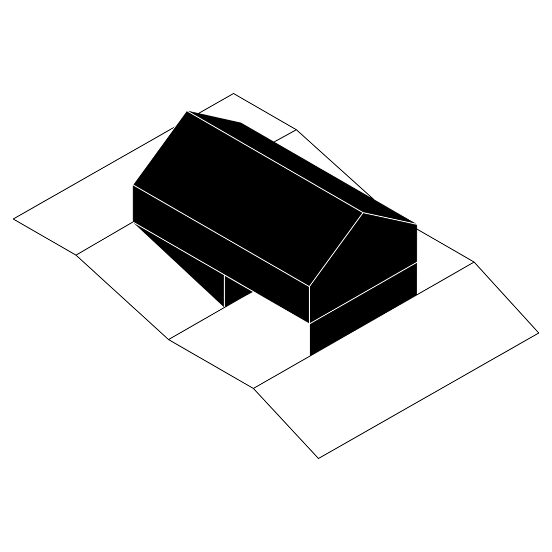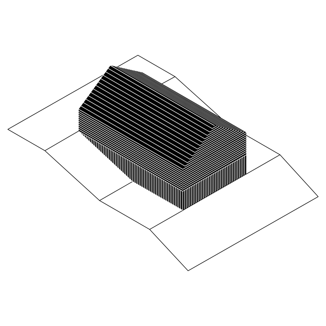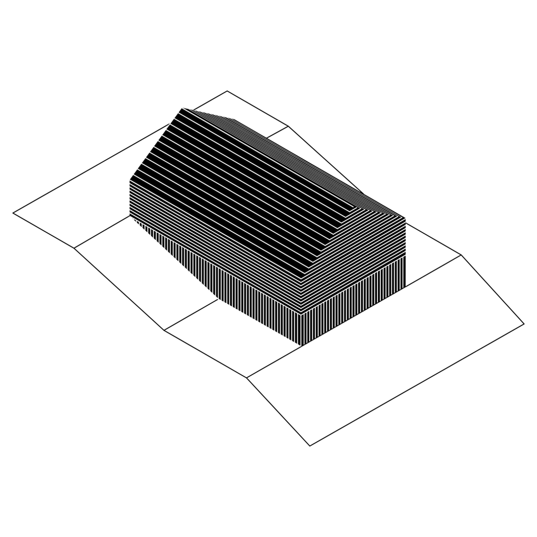 Na koniec dom kształtuje się z czterech kwadratów 9x9m po dwa na kondygnację. Od północy kwadrat garażu i wejścia pod którym kwadrat prawie całkowicie zagłębiony w ziemi mieszczący pomieszczenia techniczne i królestwo pana domu gabinet, siłownia i pomieszczenie odsłuchowe w jednym. Na południe kwadrat sypialni, które wiszą nad w pełni przeszklonym na wschód i zachód pokojem dziennym – czwartym kwadratem. Taras przy pokoju lekko zagłębiony w bryle budynku jest dodatkowo przesłaniany od drogi przez kładkę wejścia mieszczącego się kondygnację wyżej. Pełna intymność.
