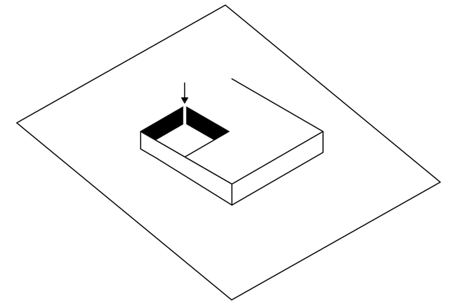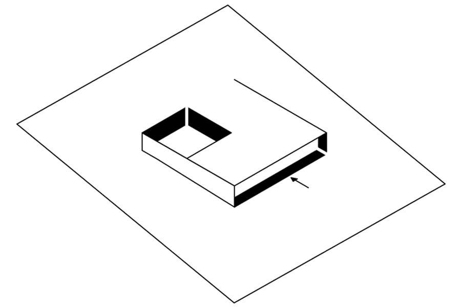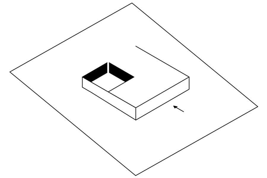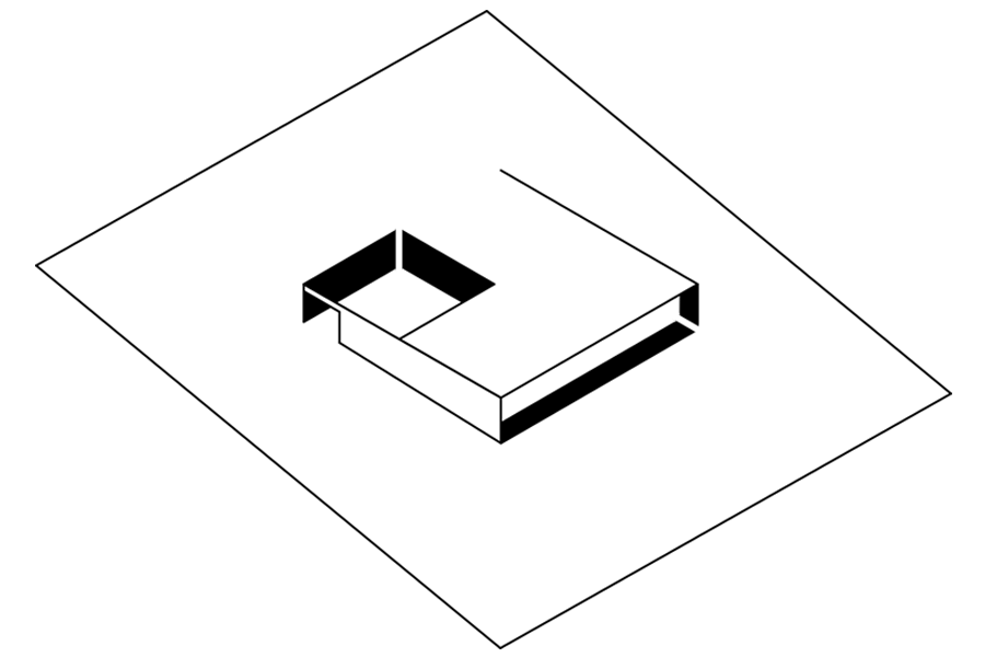 Bryła w narożniku jest otwarta tworząc wewnętrzny ganek.