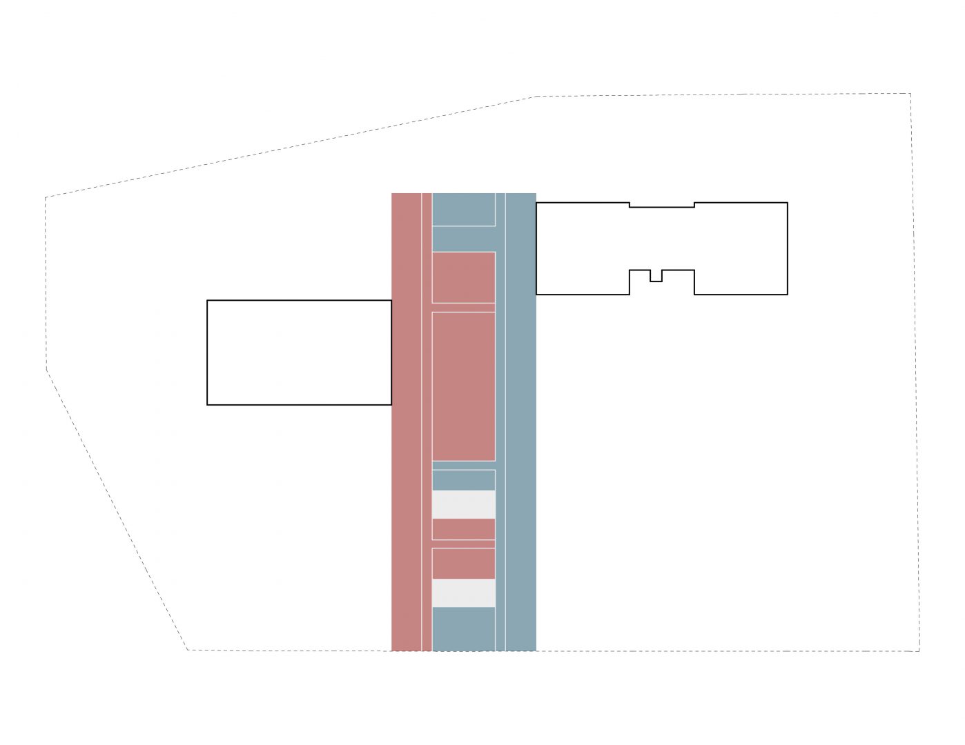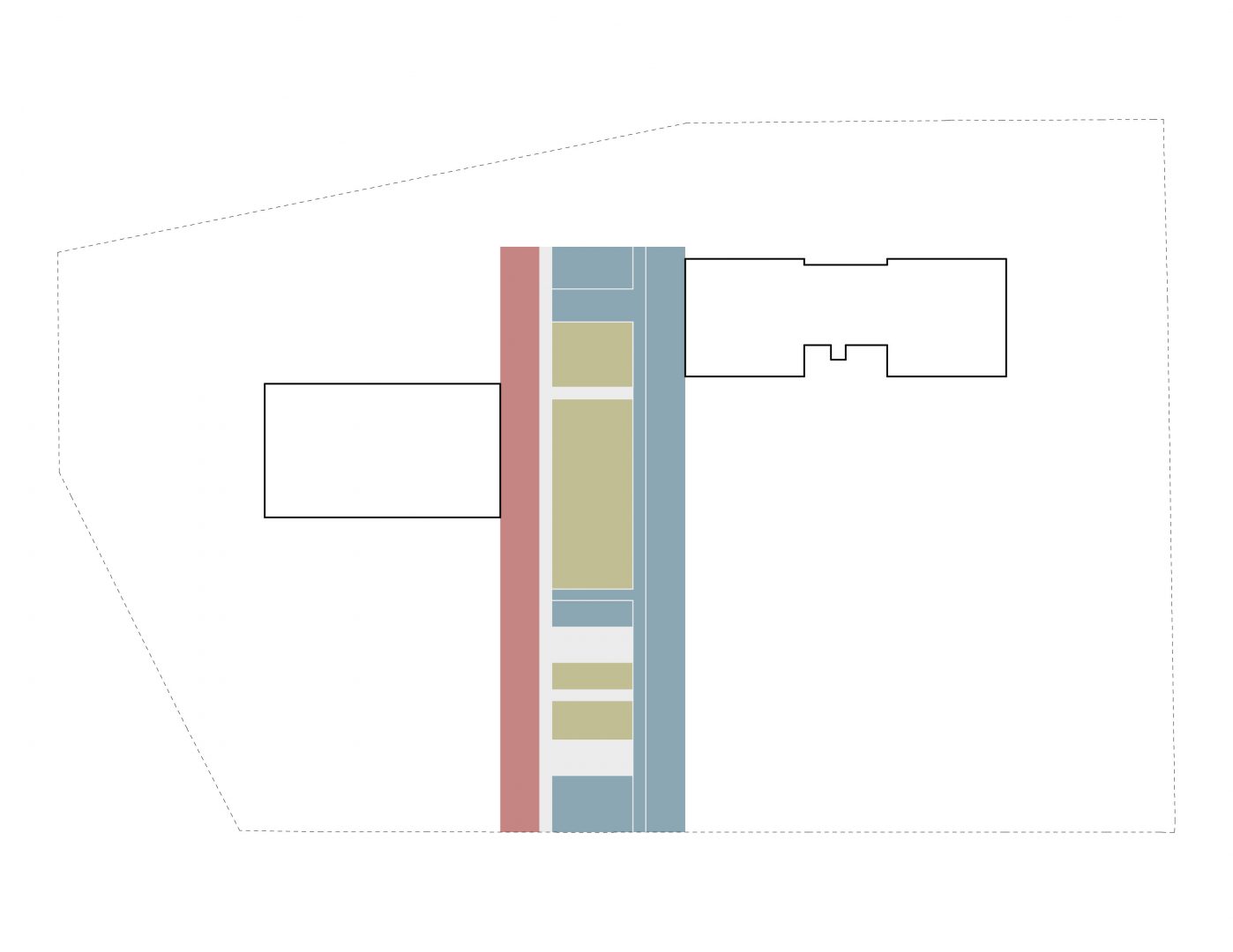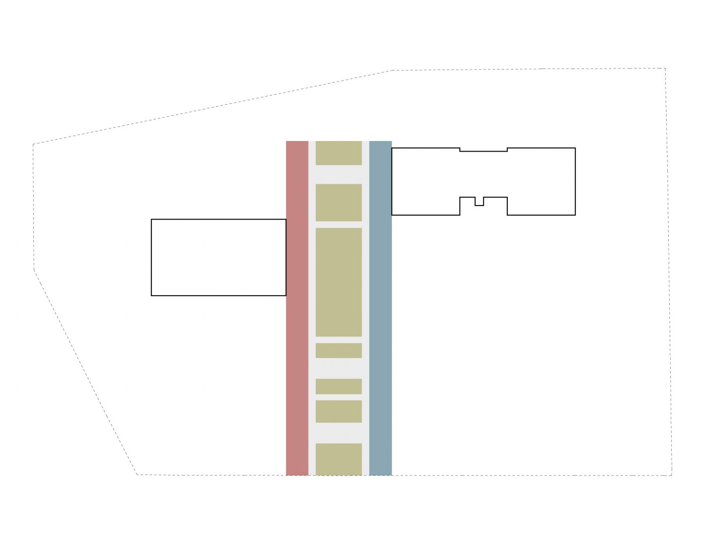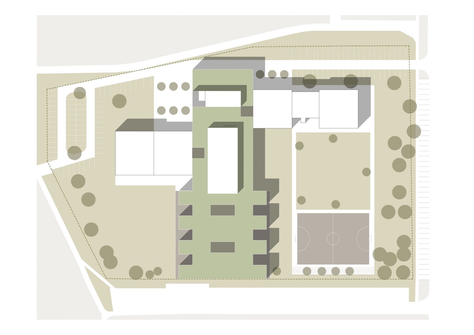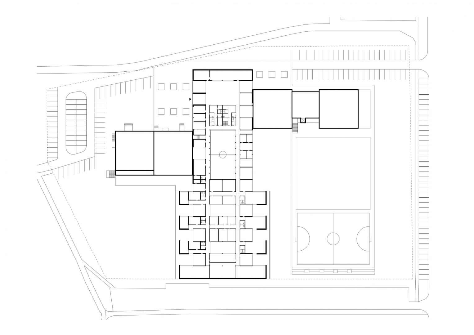 Pomysł stworzenia bryły, będącej łącznikiem, pozwolił na bliskie i praktycznie bezpośrednie połączenie obu istniejących budynków, dodatkowo wyposażając przestrzeń pomiędzy nimi w elementy tworzące część wspólną. W dalszej części znajdują się sale dydaktyczne przedzielone atrium, dzięki którym są dobrze doświetlone, co korzystnie wpływa na rozwój uczniów.