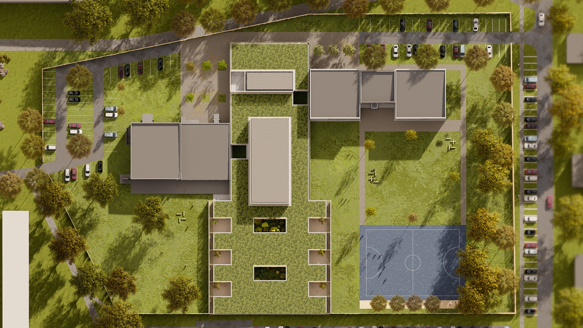 Koncepcja budynku szkoły powstała z potrzeby poprawy warunków funkcjonowania istniejącej szkoły z oddziałem przedszkolnym, poprawę warunków nauczania oraz dostosowanie szkoły do potrzeb związanych z opieką nad osobami z niepełnosprawnościami.