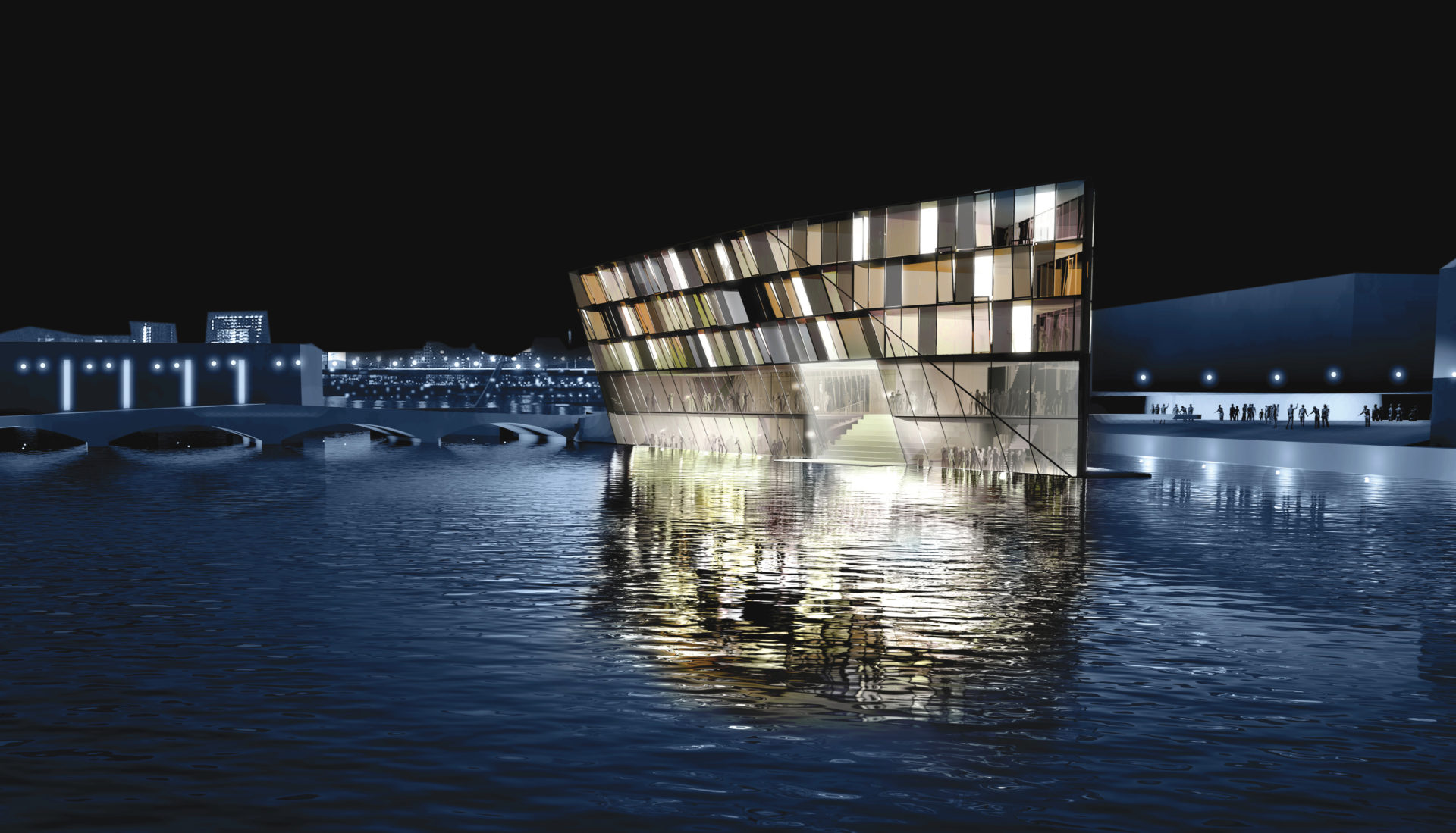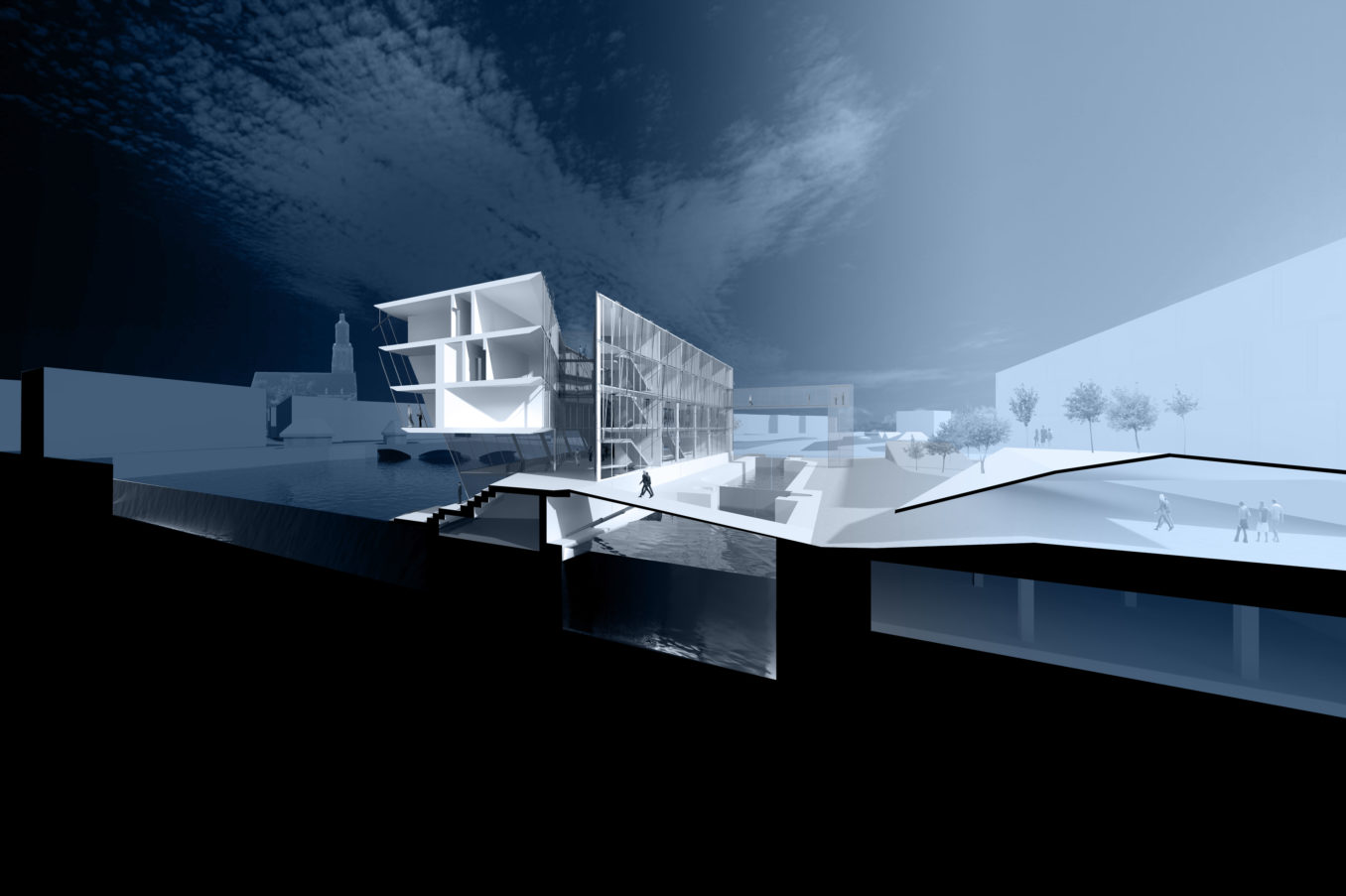 Ideą projektu jest stworzenie pierwszego we Wrocławiu wyrastającego z Odry budynku użytkowego, dającego poczucie pełnego kontaktu z wodą. Proponujemy architekturę będącą zapowiedzią nowego stylu życia nad rzeką i sposobu użytkowania jej brzegów, a także samego lustra wody.