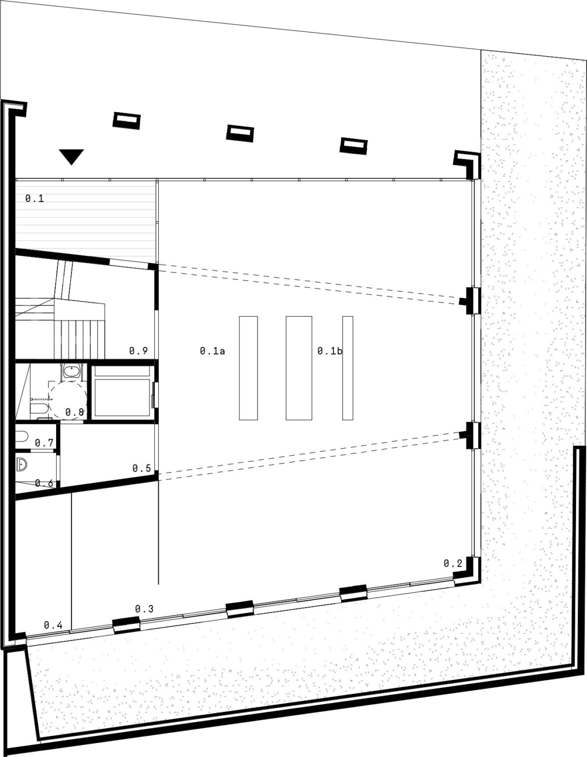 Parter pełni funkcję otwartej, elastycznej strefy spotkań, współpracy i integracji – zarówno formalnej, jak i nieformalnej. Otoczony ogrodem od południa i wschodu, otwiera się ku „starej Akademii” poprzez kontynuację czerwonego betonu posadzki na placu wejściowym.
