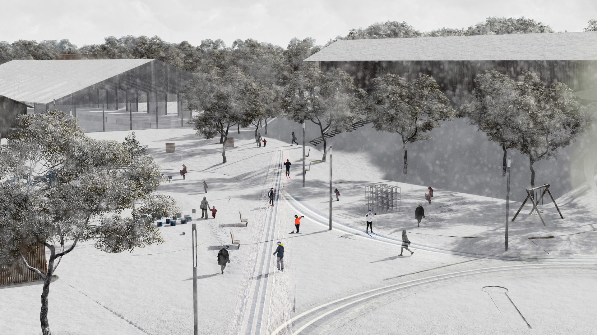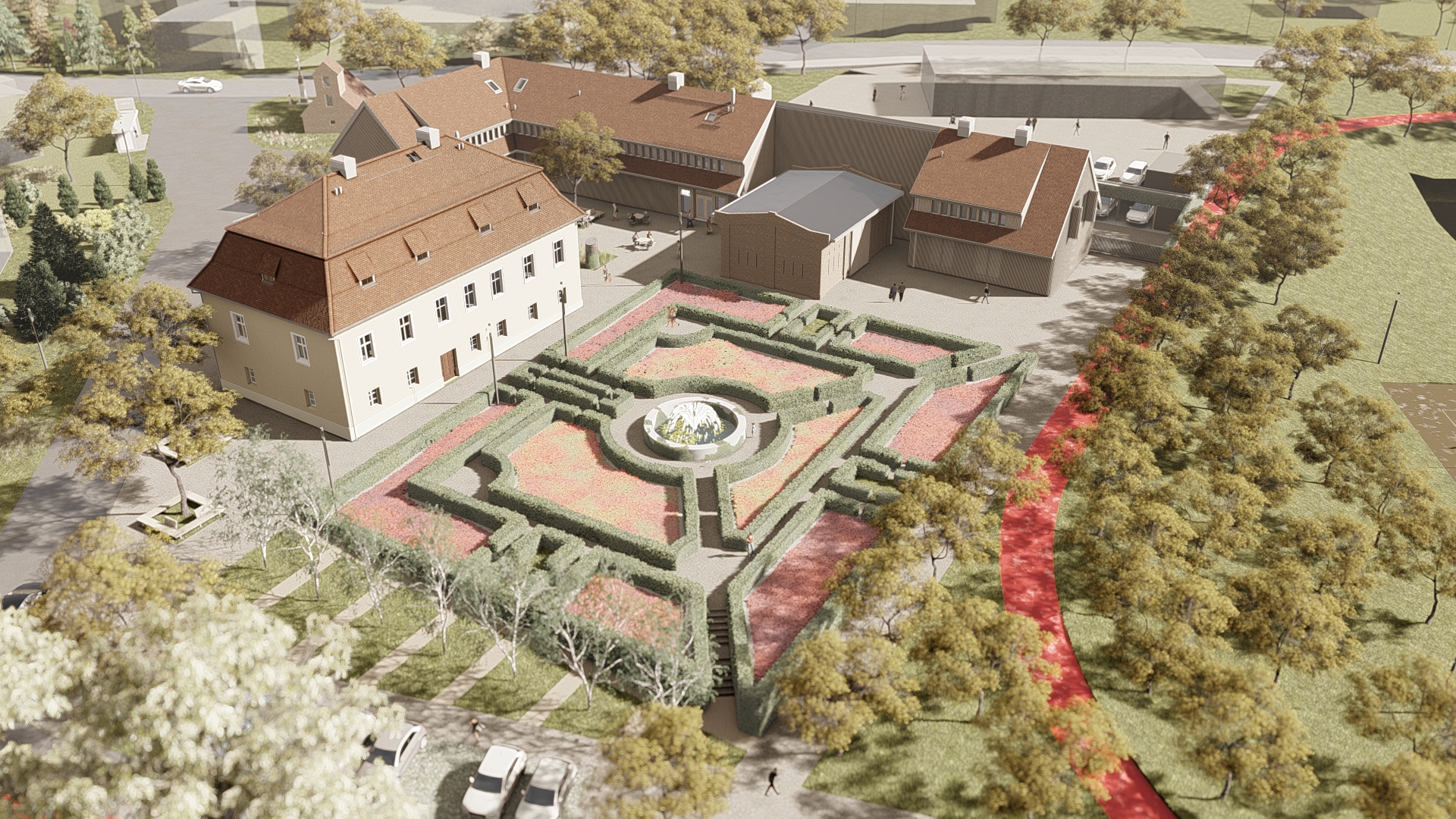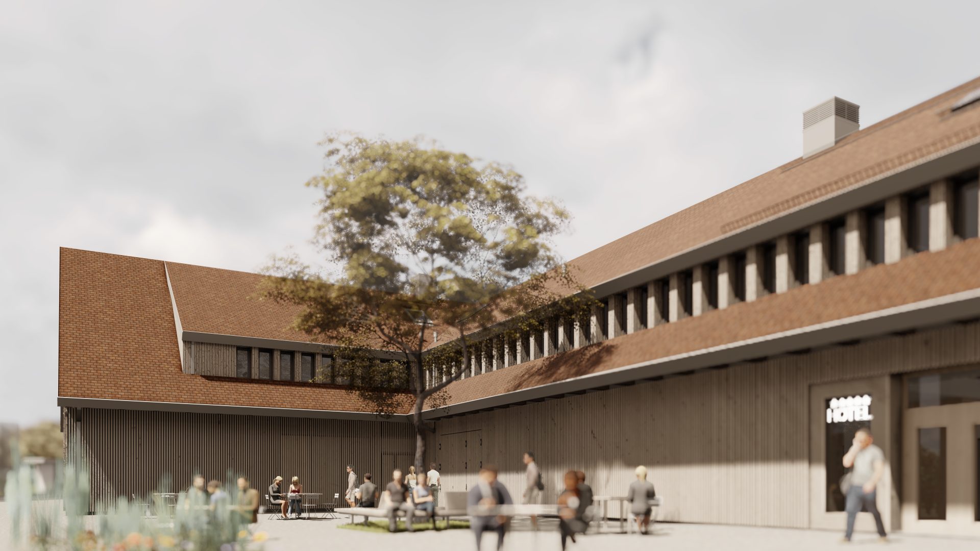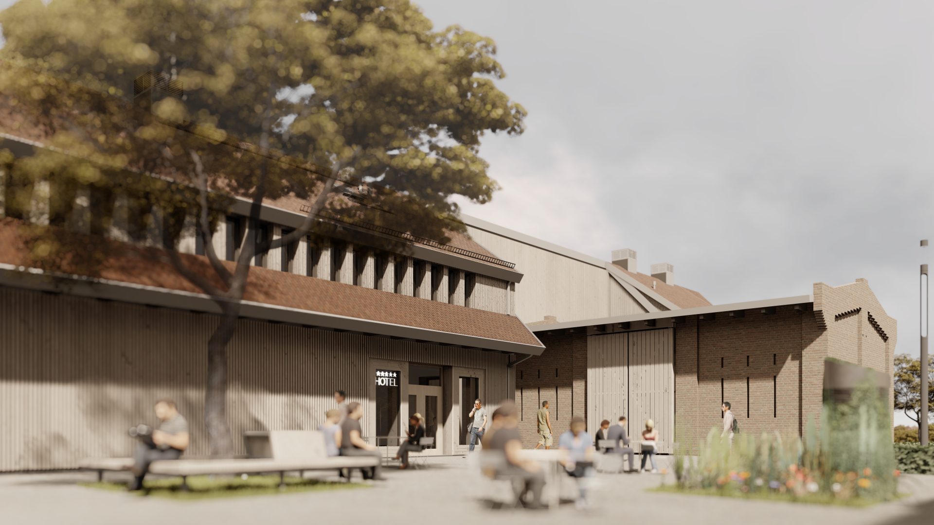 Hala wielofunkcyjna oraz małe sklepy sprzedające produkty regionalne i inne usługi, zaprojektowane zostały w byłym budynku gospodarczym. Na strychu mieszczą się pokoje hotelowe. Oprócz regularnych zajęć grupowych, odbędą się tutaj zorganizowane spotkania, uroczystości rodzinne i szkolenia biznesowe.