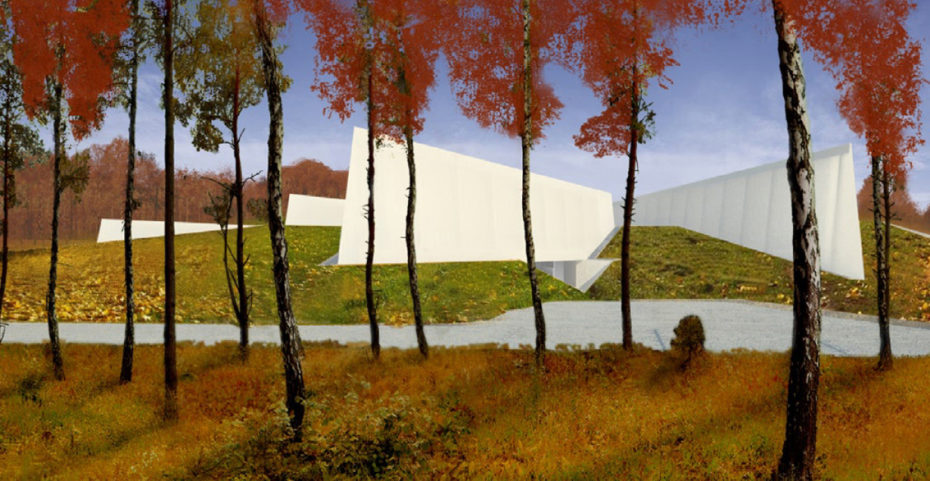 Bryła muzeum w swojej prostocie i oszczędnym wyrazie jest pełna napięcia i dynamiki, wydłużone elewacje przeciwstawiają się pionowym podziałom przesłony lasu, zza której niemal zawsze oglądany jest budynek. Z wnętrza wychodzimy ponownie na ścieżkę turystyczną, która prowadzi wzdłuż muru oporowego, poszerzając się w miejscu zaprojektowanym dla odpoczynku, oczekiwania na przewodnika etc.