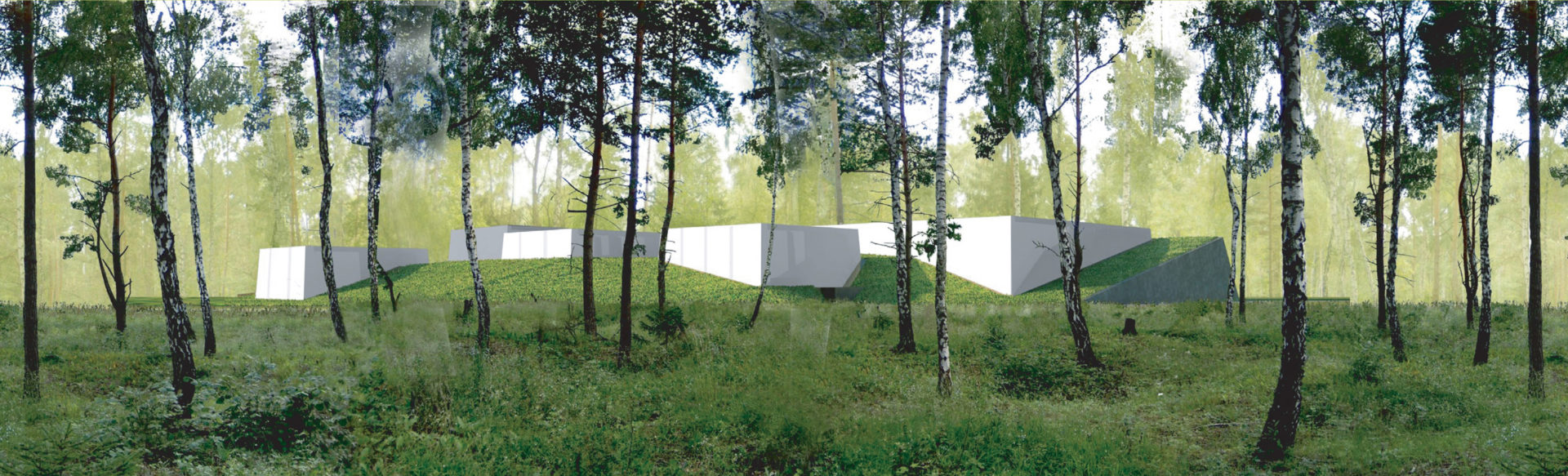 Bryła muzeum w swojej prostocie i oszczędnym wyrazie jest pełna napięcia i dynamiki, wydłużone elewacje przeciwstawiają się pionowym podziałom przesłony lasu, zza której niemal zawsze oglądany jest budynek. Z wnętrza wychodzimy ponownie na ścieżkę turystyczną, która prowadzi wzdłuż muru oporowego, poszerzając się w miejscu zaprojektowanym dla odpoczynku, oczekiwania na przewodnika etc.
