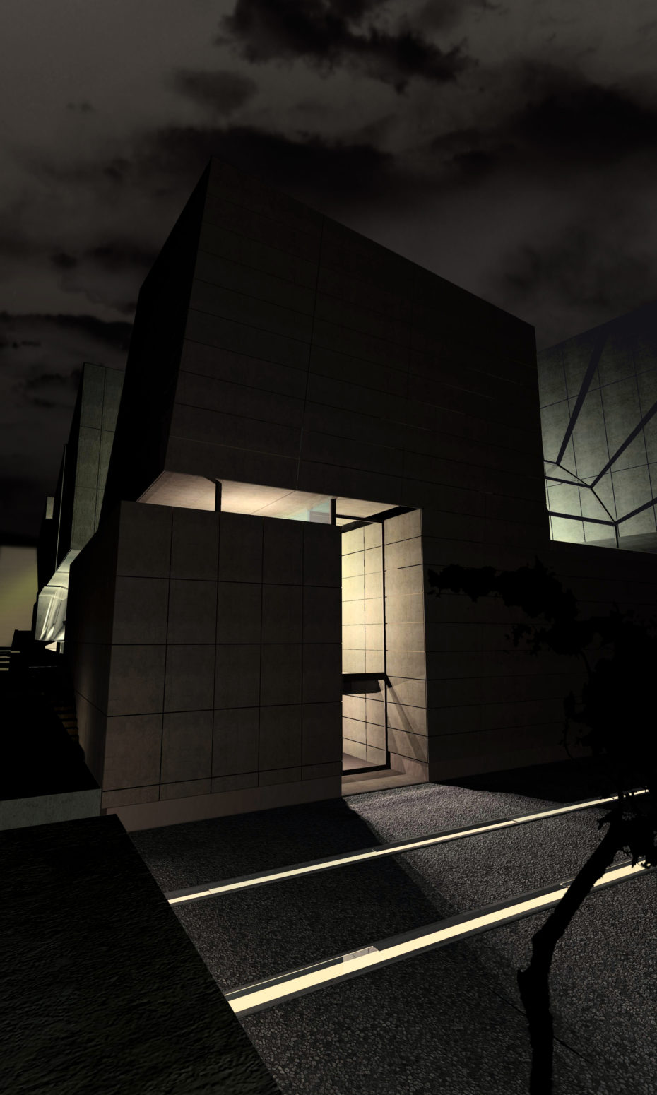 Ciąg komunikacyjny oddzielający obie strefy łączy wejście główne od ulicy Legnickiej z równie ważnym wejściem od strony Braniborskiej. Pomieszczenie portierni, monitoringu i ochrony obiektu posiada dobry wgląd w obu tych kierunkach, jak również w kierunku klatek schodowych, windy i dodatkowego wejścia od wschodu.