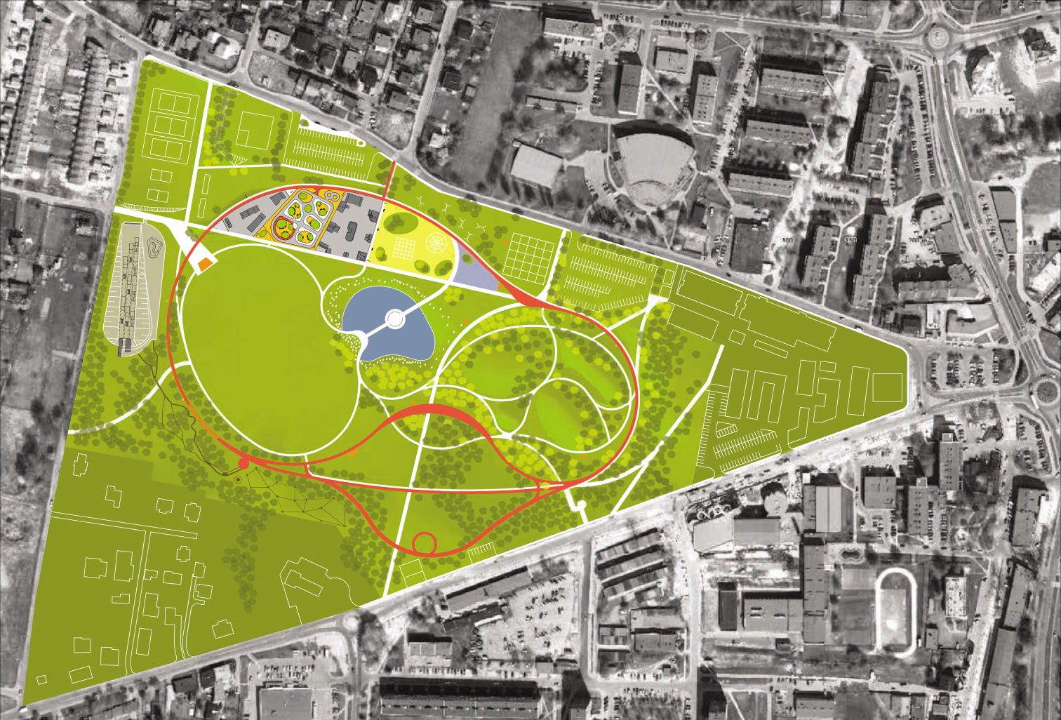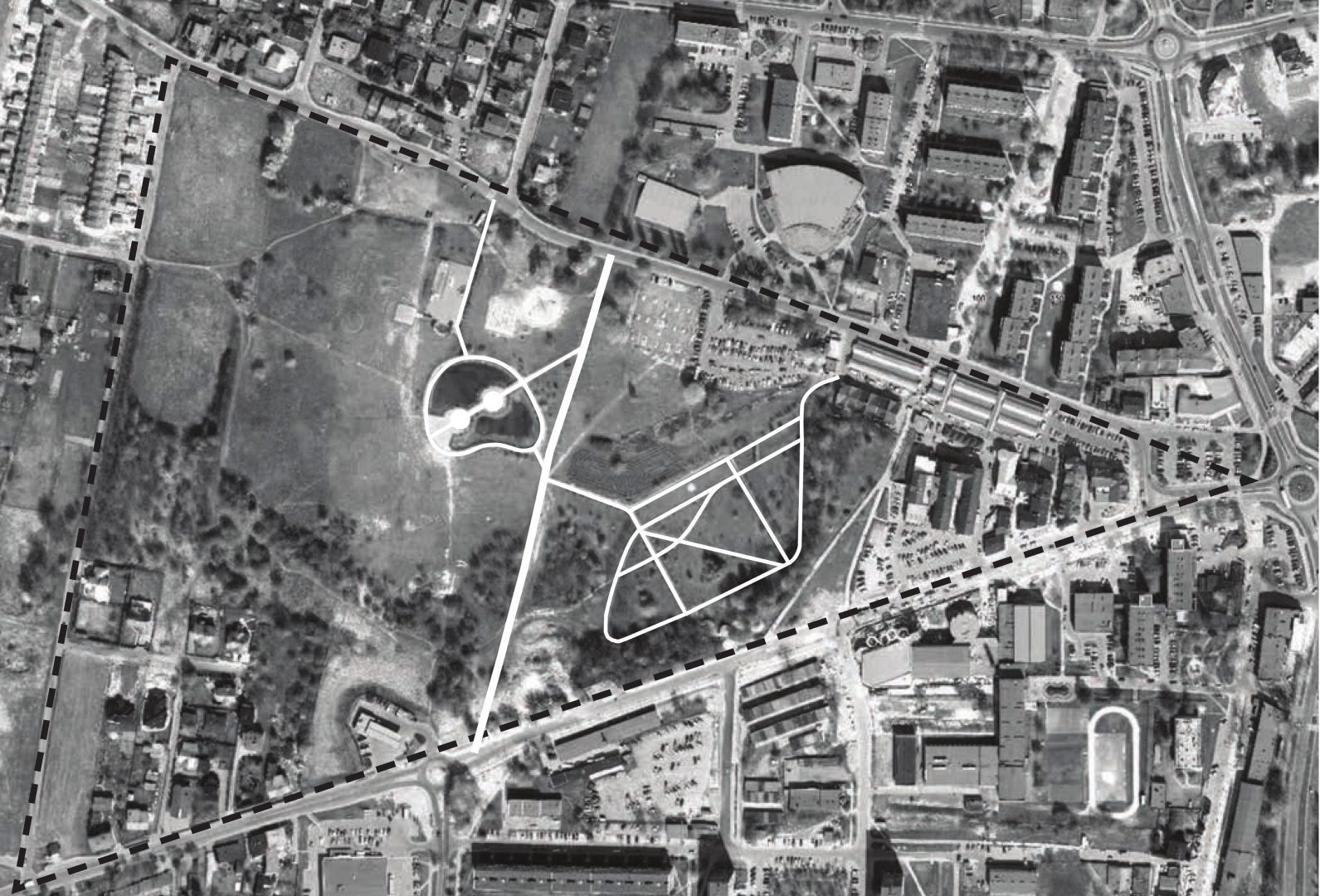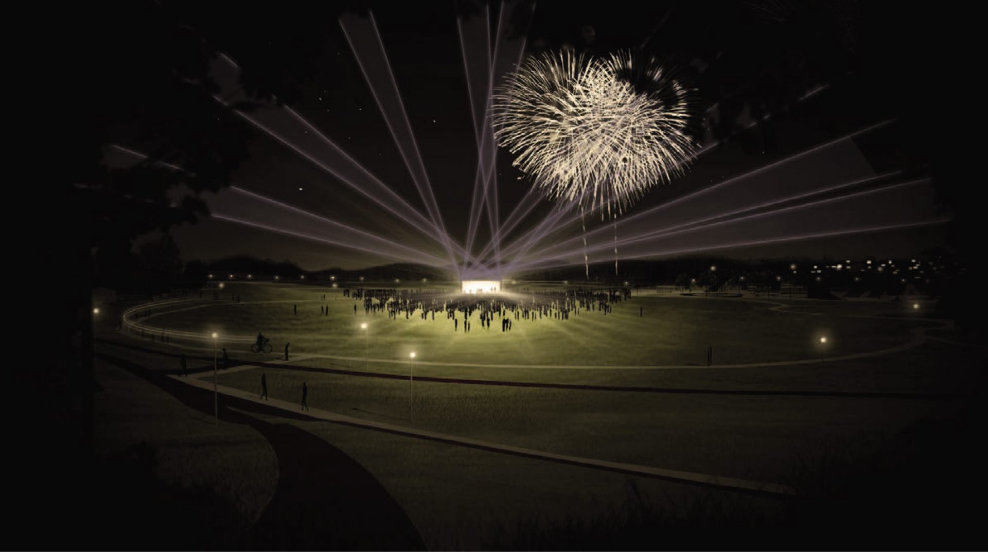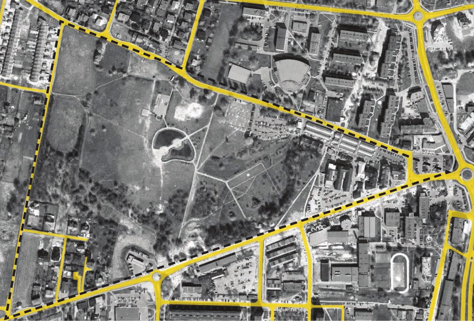 błonia ze sceną, teren spacerowy