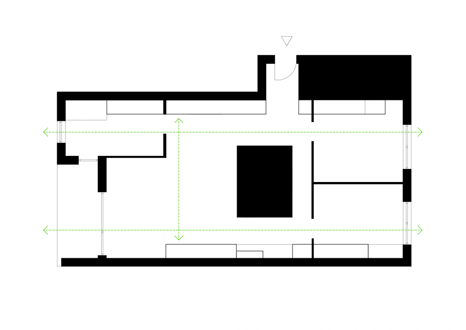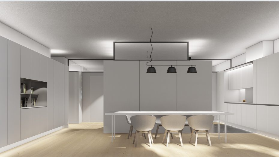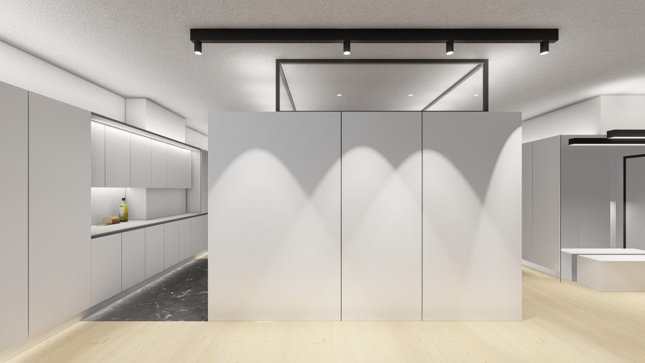 Otwarcie przestrzeni sufitowej poprzez opuszczenie szaf